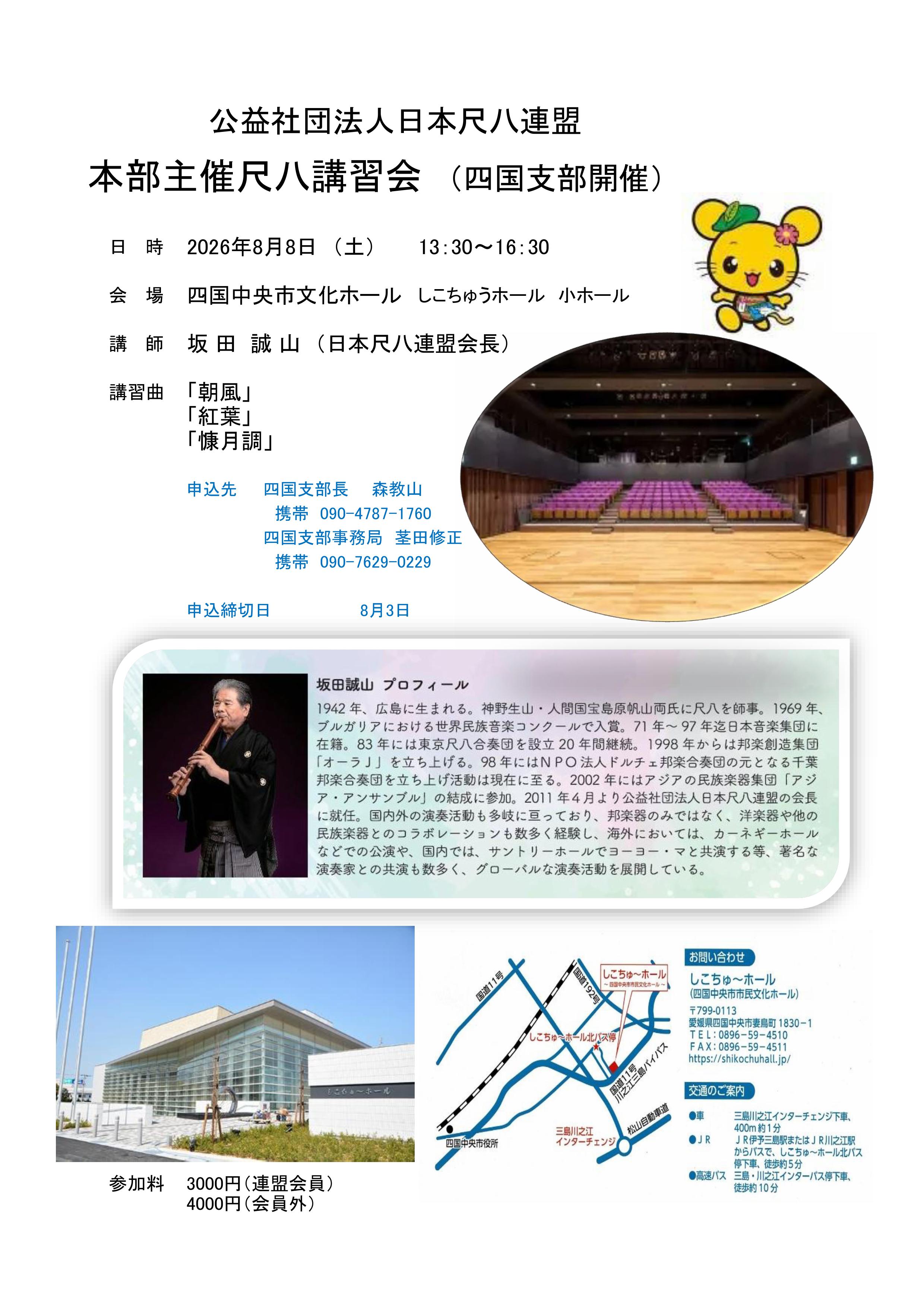 公益財団法人日本尺八連盟本部主催尺八講習会(四国支部開催)