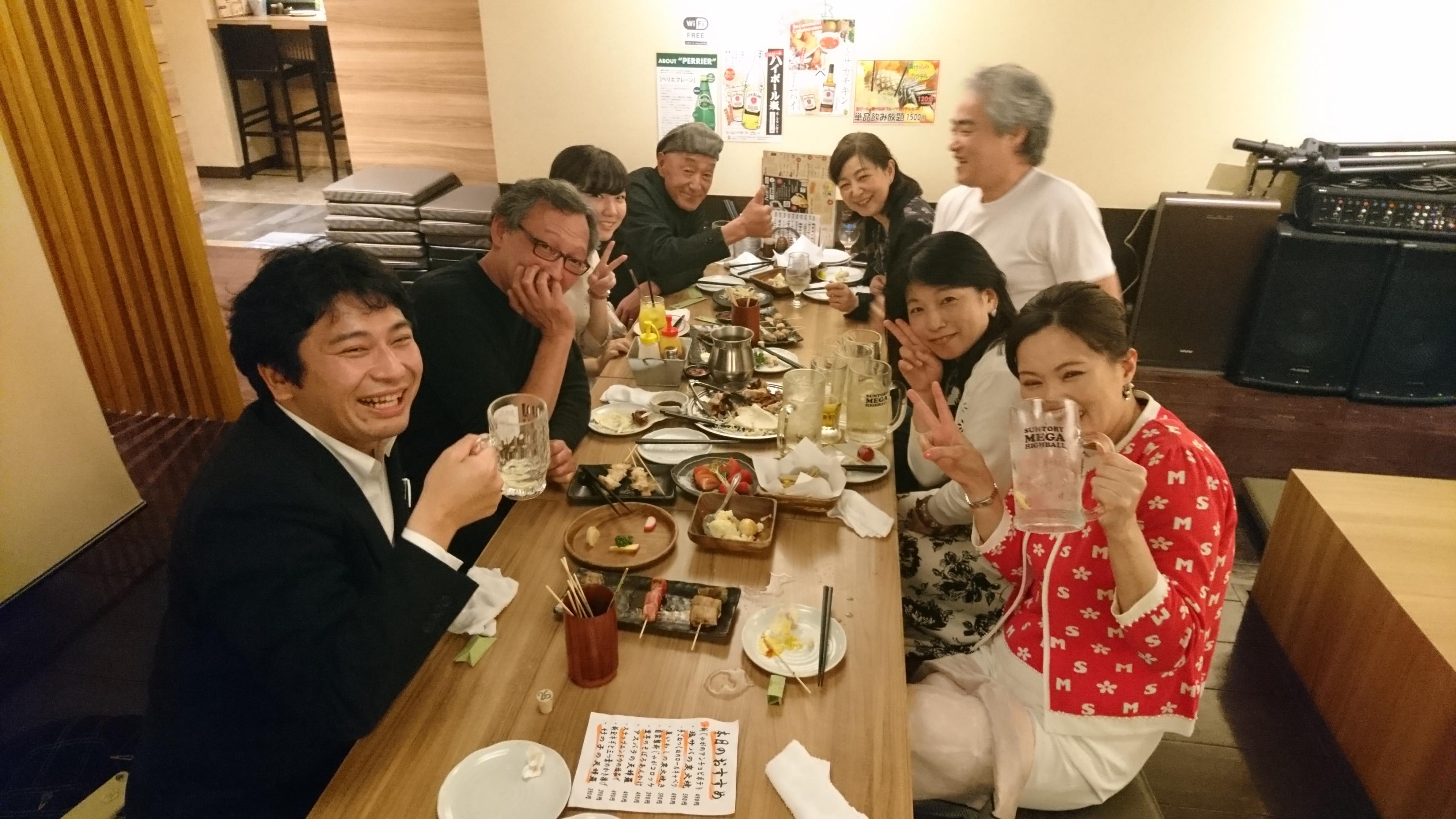 今年も無事に三曲協会演奏会が終了いたしました。 今年は曲数が多く、例年より開演を30分早めましたが、それでも撤収の時間が決まっているので、最初から舞台転換時間を切り詰めて巻きで進行させました。 その甲斐あって結果的に15分近い時間短縮ができました。 慣れてるとはいえまあ疲れましたね(^_^;) で、今回は終了後に打ち上げをしようと提案した人がいて、事前に募りましたら(ごく一部の人ですが)8名の参加がありました。 毎年相方の藤田君と二人寂しく打ち上げをするのですが、演者も一緒にというわけです。 まあね、いつももったいないな~って思ってたんですよ。 年に1回あれだけの演者が集うから、少しは流派を超えた交流会でもすればいいのにと思ってました。 もちろん交流に関して厳しいお社中の方が多いことはわかりきってますが、それでも若い世代の感覚はずいぶん変わってきてるはずなんです。 いろんなプレーヤー同士が交流することでますます演奏にも磨きがかかることも多い。 ざっくばらんな会話の中にたくさんの発見があり、得るものが多いと思います。 そんなわけで今回は実りのある打ち上げとなりました(^^) ![]() |
