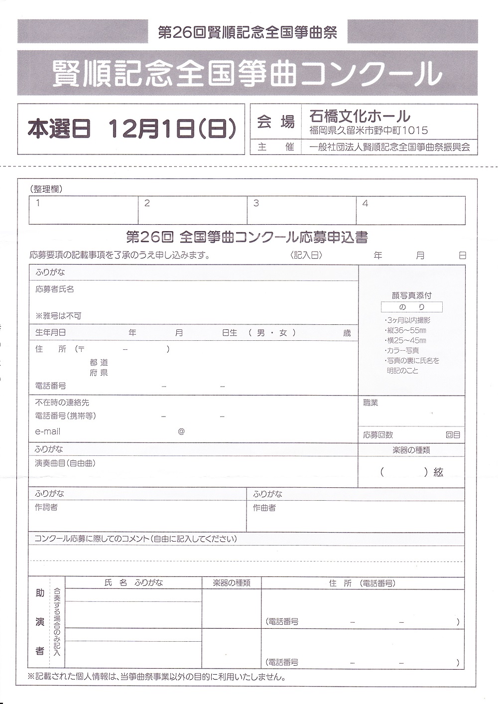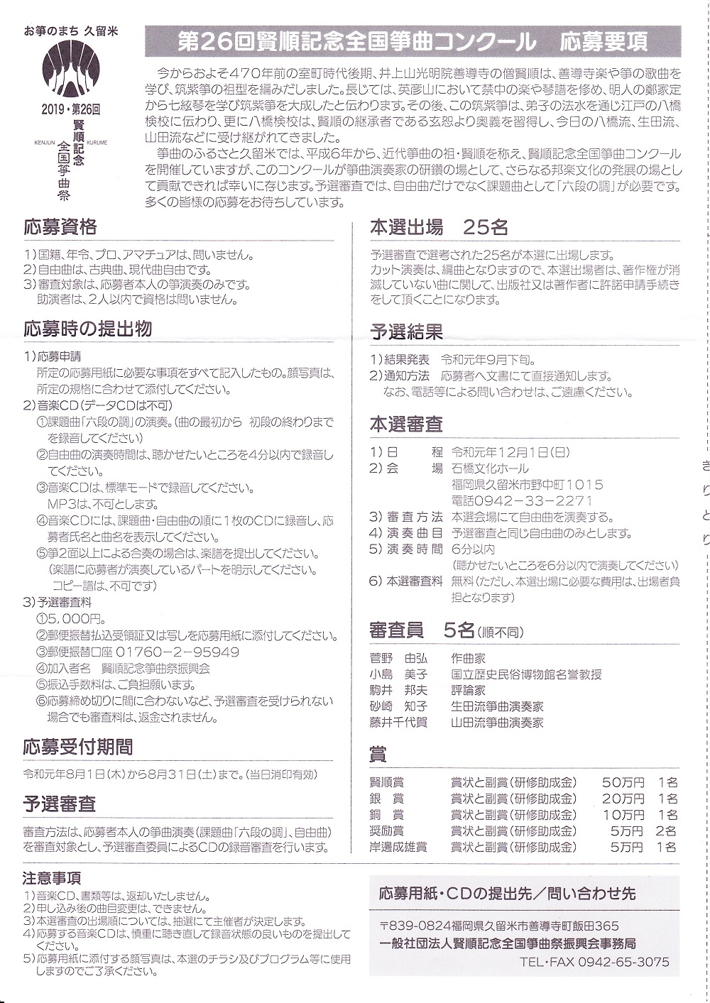 第26回賢順記念全国筝曲コンクールのご案内 |