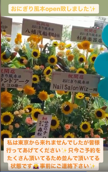 いよいよ本日、『おにぎり風本(かぜもと)』がオープンいたしました。 たくさんの人にお越しいただきましたようです。 また花束もたくさんありがとうございました。 さらにFacebookやLINEなどで取り上げていただいて感謝いたします。 うちも今宵の夕食にと思いましたら、1時間以上先になるとのことでした(^^;) 当面はお電話での予約が間違いなかろうかと思います。 ---------------------------------------------------------------- 朝11時〜21時までの営業 電話予約、ライン予約をしていただくと待ち時間なしでおにぎりを提供できるので前もっての予約がおすすめです 愛媛県松山市大街道1-1-7交番横 電話番号 089-948-9858 ----------------------------------------------------------------------- ![]() |