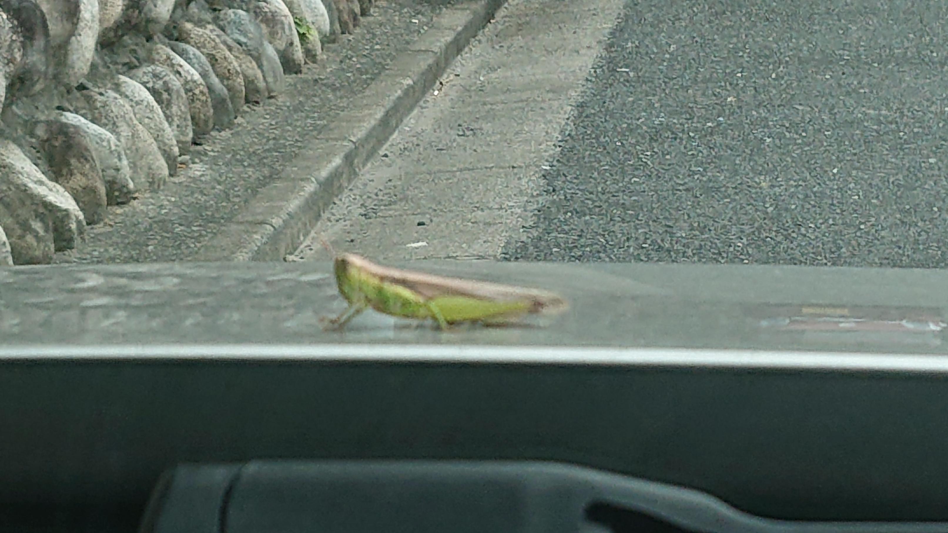 気が付けばブログ未更新のまま1週間以上が経過しました(^^;) 吉崎レッスンのあと、理事会や出張などが重なり多少バタバタしておりました。 その出張も台風9号と史上最強10号の間隙を縫い、広島に行ってまいりました。 本日10号が来る前に何とかフェリーに飛び乗りましたが無事に帰還しました。 現在フェリーは台風に備え運航を止めております。 まさにここしかない!というタイミングの出張でしたね。 なのでちょっと時間無理して回りましたので、疲労の度合いが大きいようですw 特に糸締めにより両手は腫れてますね~ww そんな中ちょっとほっこりする出来事が。 ![]() バッタですね~。 昨日朝ホテルの駐車場出るときからボンネットの後端に乗っかっており、走り始めてすぐに気づきまして、どうせどこかで飛んでいくんだろうとクルマを走らせていたんですが、なかなかどうして飛び立たないw 結局1軒目の到着まで彼はいました。 で、仕事済ませて2軒目に向かおうとしたらなんとまだいる。 そしてそのまま4軒目までついてきました(^^;) 走行距離は20キロ以上、時間にして8時間! ナニが彼にそうさせたのかは不明であるが、5軒目に行こうとしたときには消えていました。 まあ4軒目が長時間になったことと、駐車場が人の出入りの多いコインパーキングだったことが原因かもしれません。 ただ目の前が公園で彼にとっても環境が良かったかも(^.^) |