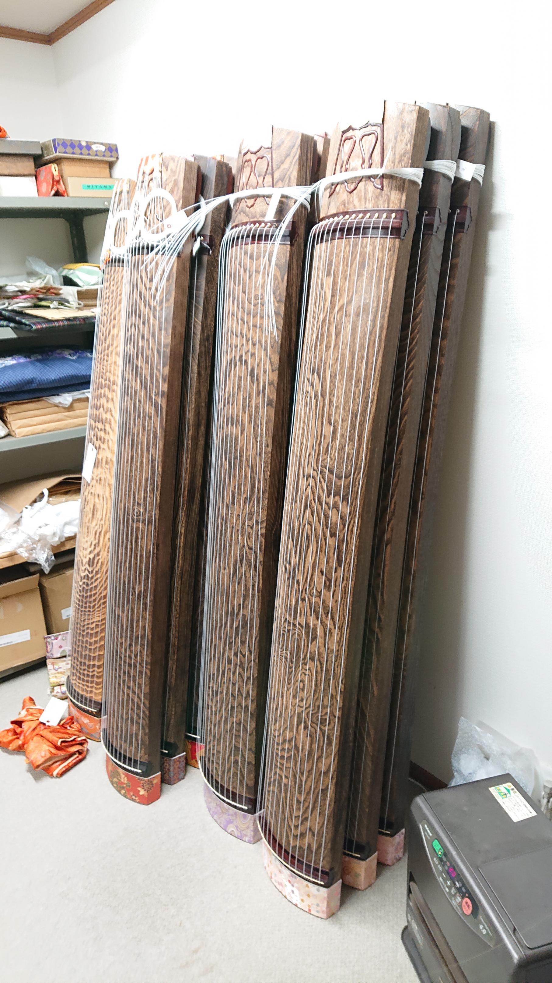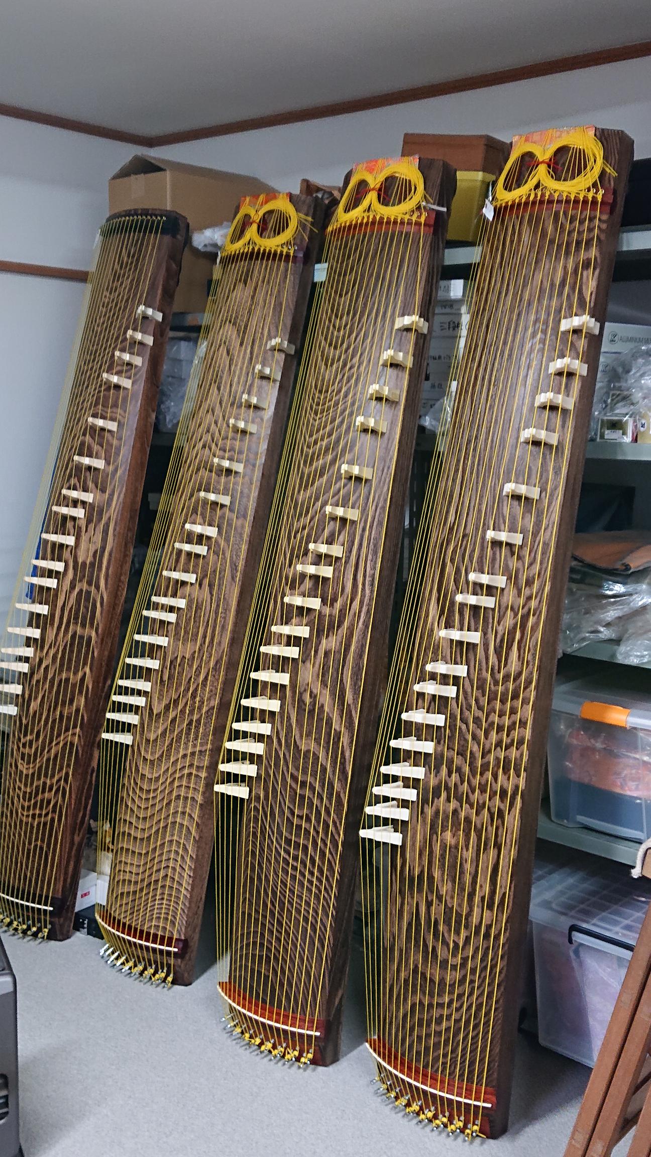 文化庁による『邦楽普及推進事業』というのが昨年より始まりまして、内容はというと、大学、高校の邦楽部に対して、新品の和楽器を無償貸与するという事業です。 大学は申請書類の審査で決まり、高校は抽選です。 『こんな支援事業がありますよ』と、大学や高校を担当されているお客様にいち早くお知らせしたところ、四国で唯一、当店が3校の担当となりました。 いずれも松山市内の大学高校で、昔からお世話させていただいてる学校です。 もちろん新品であるからには和楽器メーカーがせっせと楽器を作ります。 それを担当店が仕上げして納品するという流れです。 また立奏台や付属品はそれぞれの問屋さんで手分けして送られてきます。 その数はもう尋常でないです。 楽器や付属品の段ボール包装をほどくだけで結構な時間を取られました。 何より楽器はすべて僕の仕事部屋にて仕上げしますので、昨年より僕の仕事部屋はお箏だらけとなってましたw 本来なら昨年には納品したかった大学の楽器、一番時間のかかる25絃が年末に到着するなどで、今年1月前半は糸伸ばしに費やしました。 で、やっとすべて納品かと思えば大学が試験期間に入り、おまけにオミクロンの影響でなかなか納品日程が出ません。 高校の方は箏以外に17絃が3面あったりして、これも糸伸ばしに時間がかかる故、年始に楽器が届くとすぐさま糸締め、そろそろ1週間になりますが、まだ最低10日はかかるかな。 そんなわけで依然として新品の和楽器に覆われた仕事部屋ですw ![]() ![]() ![]() |
