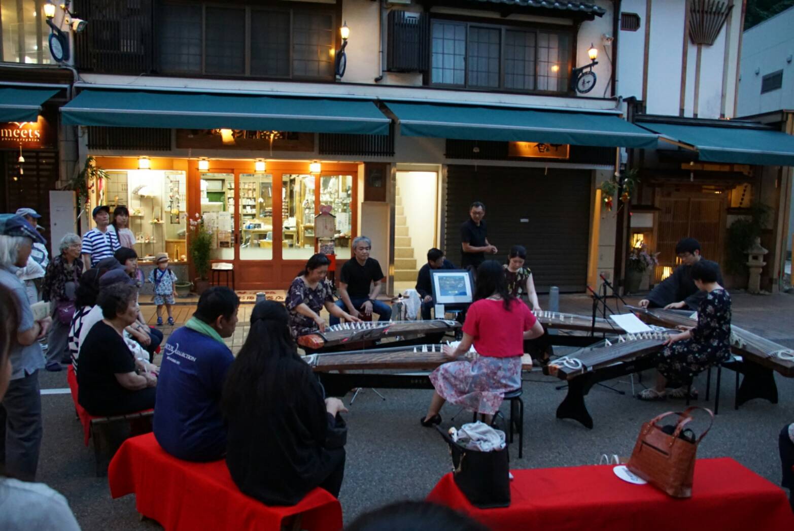 全4回開催される星空コンサート、昨日はその3回目。 出演は前谷社中の若手および幹部の皆様です。 今回はちょいと変則的な配置にしてみました。 ![]() このようにお互いが向き合って演奏するスタイル、前谷先生はコレがお気に入りのようです。 お、僕も中央奥側でカホン叩いてますねw これはベンチャーズの「京都の恋」を筝曲にアレンジしたもので、それにリズムセクションを勝手につけました。 4月の三曲協会の舞台で初演しましたが今回が2度目、3か月ぶりですが身体が覚えてるもんですね~(^-^; これが最後の曲だったんですが、全13曲演奏したため周囲もいい塩梅に暗くなり、文字通り「星空」の下でのコンサートになりました。 カホンは今年に入って4度目、次回は9月に坂の上の雲ミュージアムで出演予定です。 っていうか本職はギターなんすけどねww