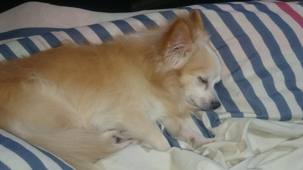 え~どうも、僕はルパン(チワワ♂)です。 いつもは僕のご主人様が何かとお世話になっております。 今日はご主人様に代わって僕がブログ書いてます。 僕は今年の6月で11歳になりますけど、時々ご主人様がFacebookなるもので僕をUPしてるらしいので、ご存知の方もいらっしゃるかもしれません。 ご存じの通りご主人様は、年末はしゃぎすぎて自業自得の報いを受け、大晦日からずーっと情けない生活を送っています。 ま、生命の危険はないみたいですが、ひとたび身体の体勢を変えるたびに「ウウッ!」とか申しております。 全く・・・一緒に寝起きしてる僕にとっては、『うるさいな~』って時々思いますが。 事故から今日で4日目になりますが、少しずつ落ち着いてる感じで・・・・午後には何やら突然部屋の模様替えなんかに着手し、「ウウッ!」とか「アアッ!」とか言いながらゴソゴソやってました・・・痛いんでしょうね。 おかげで僕の寝てるカーゴは窓際に追いやられ・・・。 今は赤い液体を飲みながら『孤高のグルメ』っていう、ひたすらモノを食べ続ける番組見ながらニヤニヤしてます。 あ、でもお正月休みはご主人様、ずーっと一緒にいてくれて、美味しいもの僕に食べさせてくれるんで幸せです。 ん?そろそろ僕も眠くなってきました。 ご主人様、明日は自分でブログ書いてね。 おやすみ~・・・むにゃむにゃ。 ![]() |
